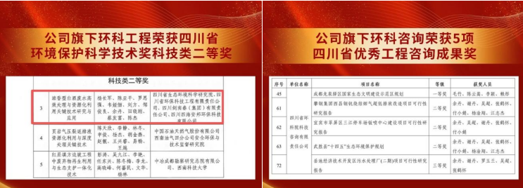 权威点赞,科技赋能结硕果。9月公布的四川省环境保护科学技术奖中,公司参与完成的“浓香型白酒废水高效处理与资源化利用关键技术研究与应用”荣获科技类二等奖。项目历经8年,实现了浓香型白酒废水氮磷的高效处理和资源化回收利用,成功应用到剑南春酒厂等多个知名白酒企业,废水处理规模逾万方每天,有力支撑四川白酒产业提质倍增。同月,四川省优秀工程咨询成果奖评选结果公布,公司因在推进省内多地国家生态文明建设示范区规划、工业领域超低排放改造等方面的深厚积淀和技术能力,获评一等奖1项、二等奖3项、三等奖1项,助力全省各地加快推进降碳减污扩绿增长。